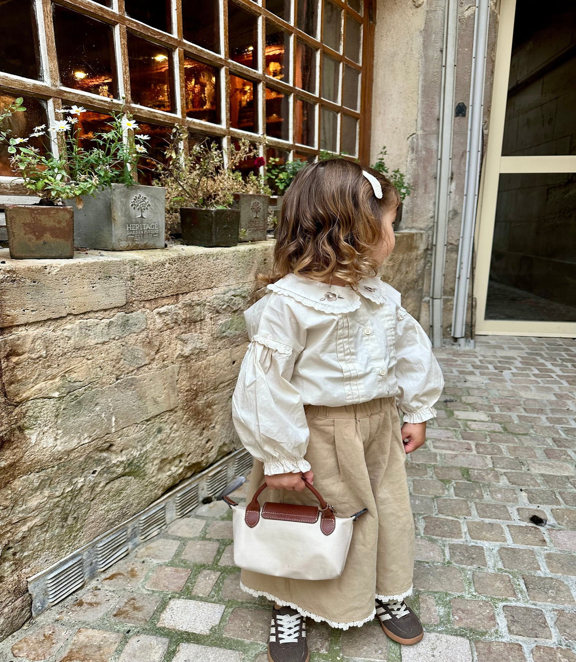 Chemisier écru avec son col claudine orné de délicates petites fleurs.
